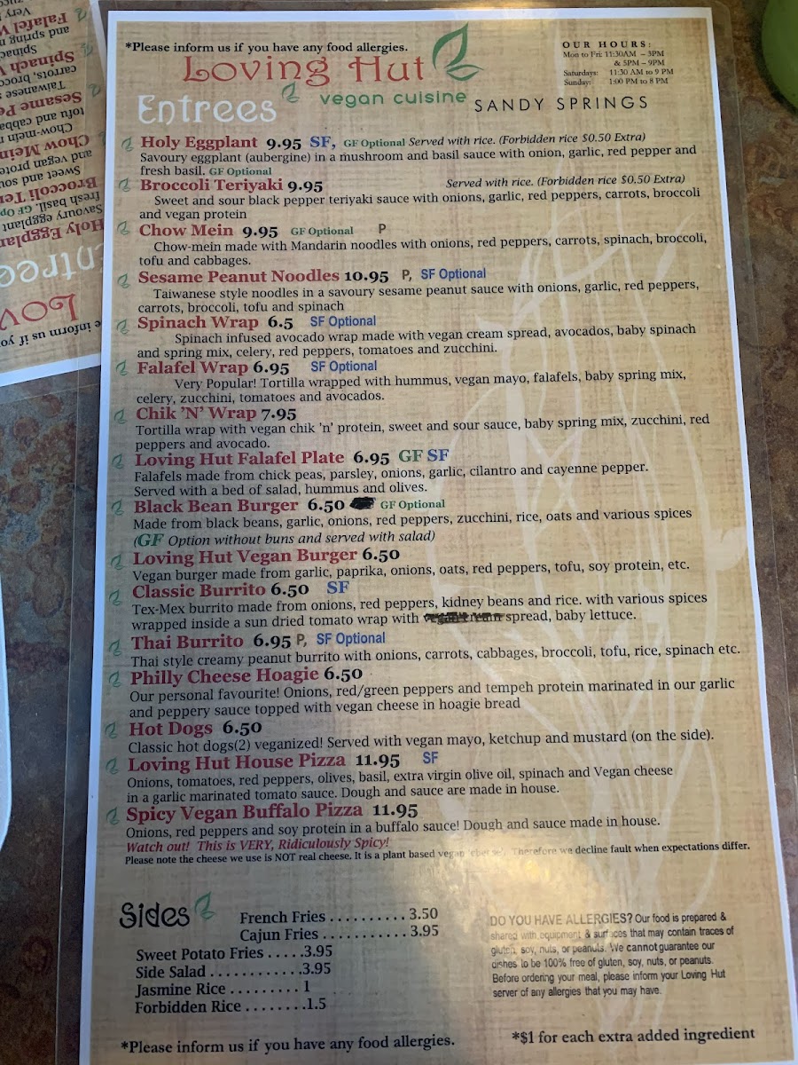 Welcome to Loving Hut Sandy Springs, a delightful haven for vegan cuisine located at 220 Hammond Dr #302, Sandy Springs, GA. This restaurant prides itself on a diverse menu that celebrates Eastern-inspired dishes. One standout is the Holy Eggplant, a fragrant blend of fried eggplant, basil, and peppers in a sweet brown sauce, served with rice for just $13.95. If you're craving something hearty, the Sesame Peanut Noodles offer a delightful stir-fry of noodles and fresh vegetables in a mildly spicy peanut sauce.